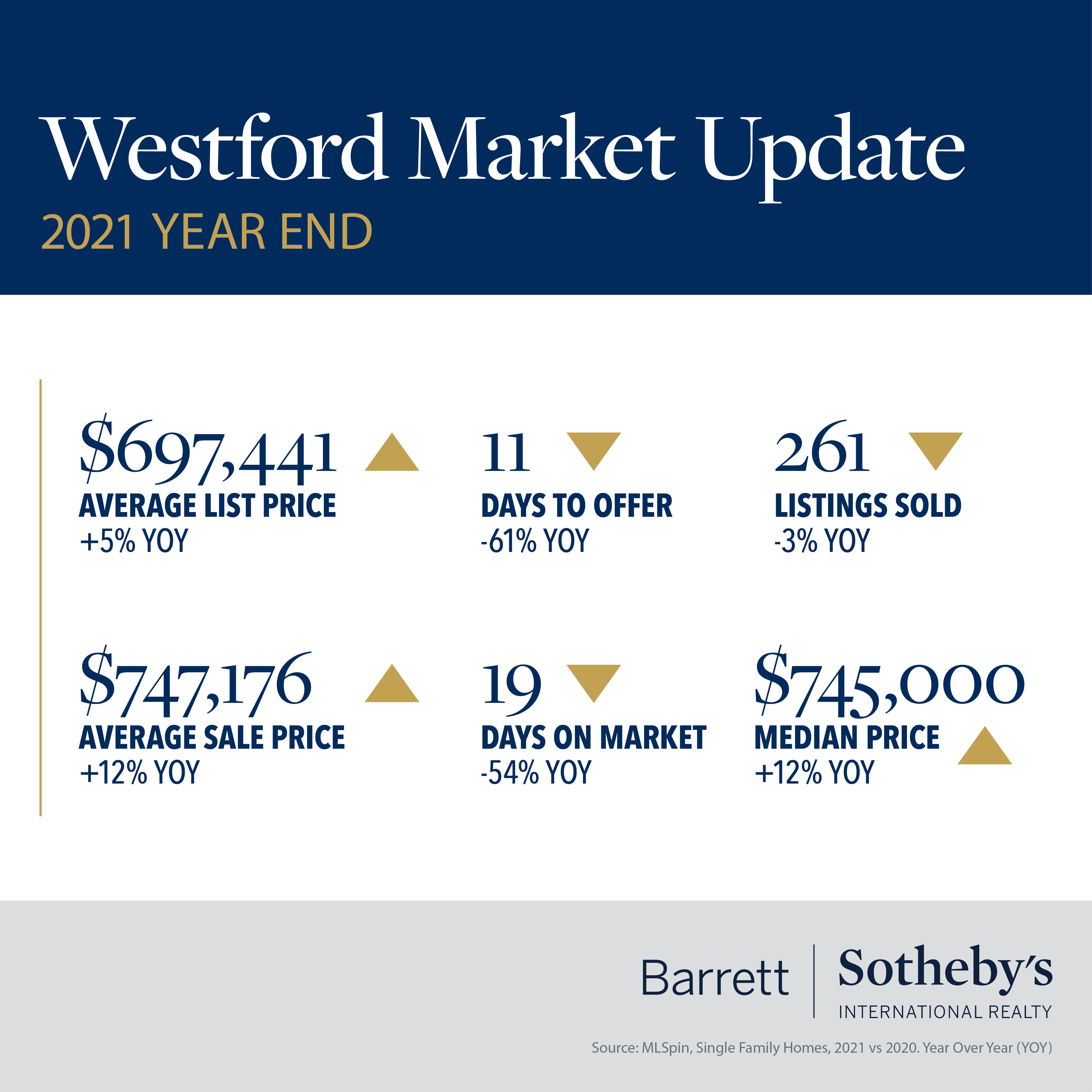 Now the dust has settled on the 2021, it’s time to look back and analyze what happened in the housing market last year. Across the past 12 months we have heard about the shortage of homes for sale and the high demand from buyers leading to bidding wars and inflated prices. But towards the end of the year there were also reports of a cooling of the over-heated market, as the end of pandemic related aid and talk of interest rate rises led to some buyers taking themselves out of the market. The pandemic (unfortunately) is still with us, and so, it seems, is the strong housing market. Across the board we can see house prices were up compared to 2020 - and remember how strongly the market recovered in the second half of that year. Acton saw average house prices up by 20%, and in Concord they were up by 27%. Time was still of the essence when making offers – days to offer and days on market were down on the previous year. Homes were on the market for less than 30 days in Bedford, Acton and Westford. It won’t come as a surprise to see that in towns such as Lexington and Winchester fewer homes were sold than in 2020 - and yet all our towns reported an increase in market volume – the effect of those increased sale prices. Overall, 2021 was a very good year to be selling your home, and a tough year if you were a buyer.
