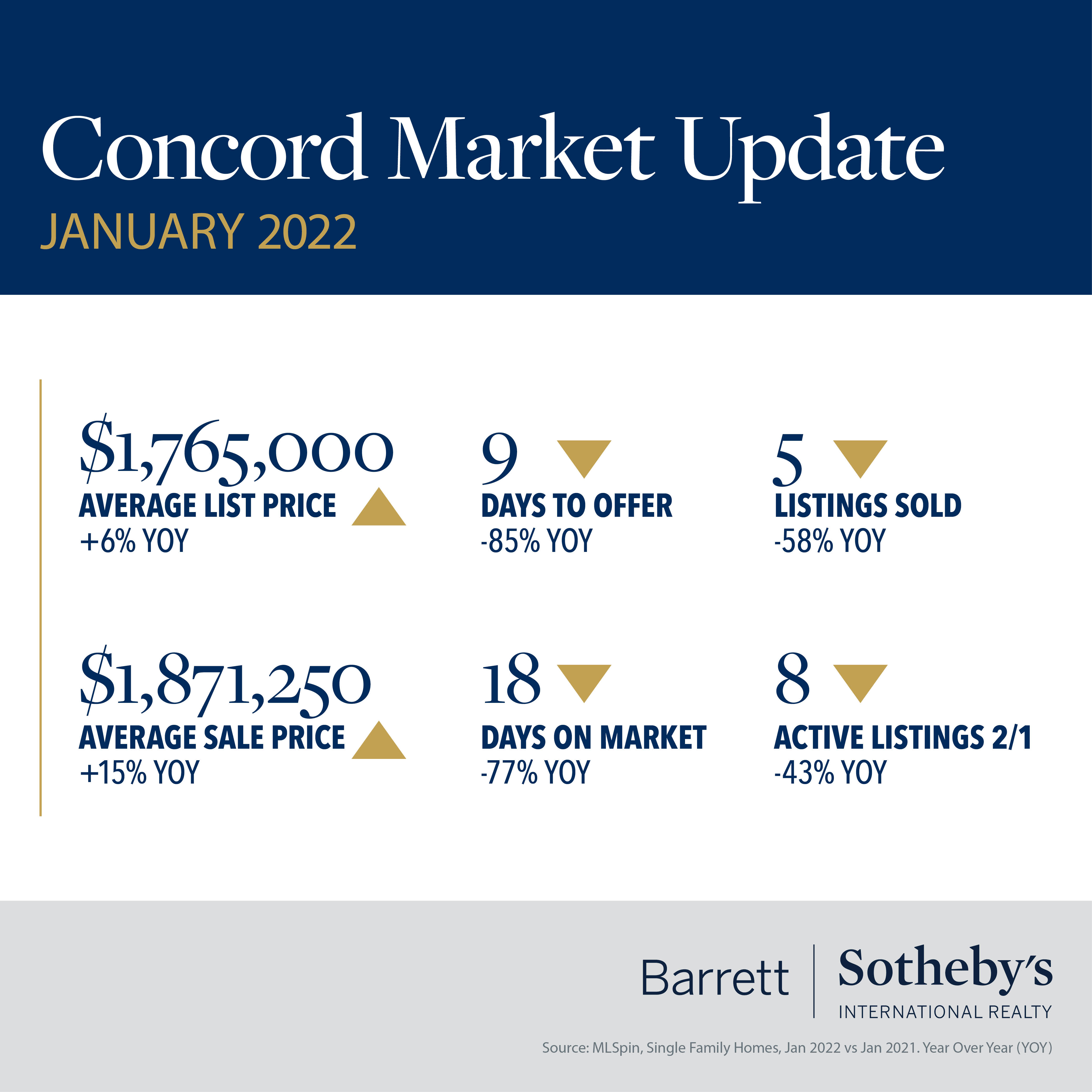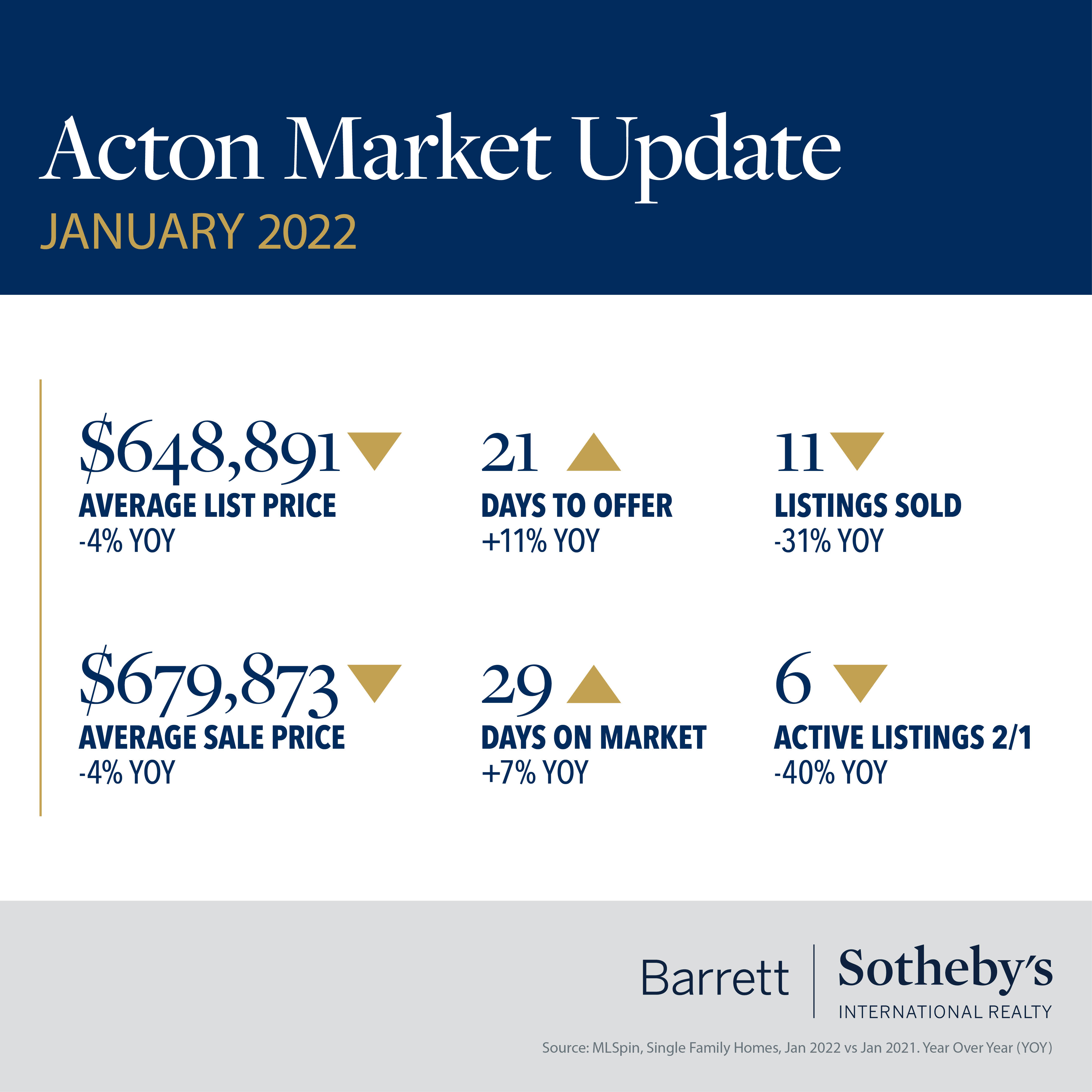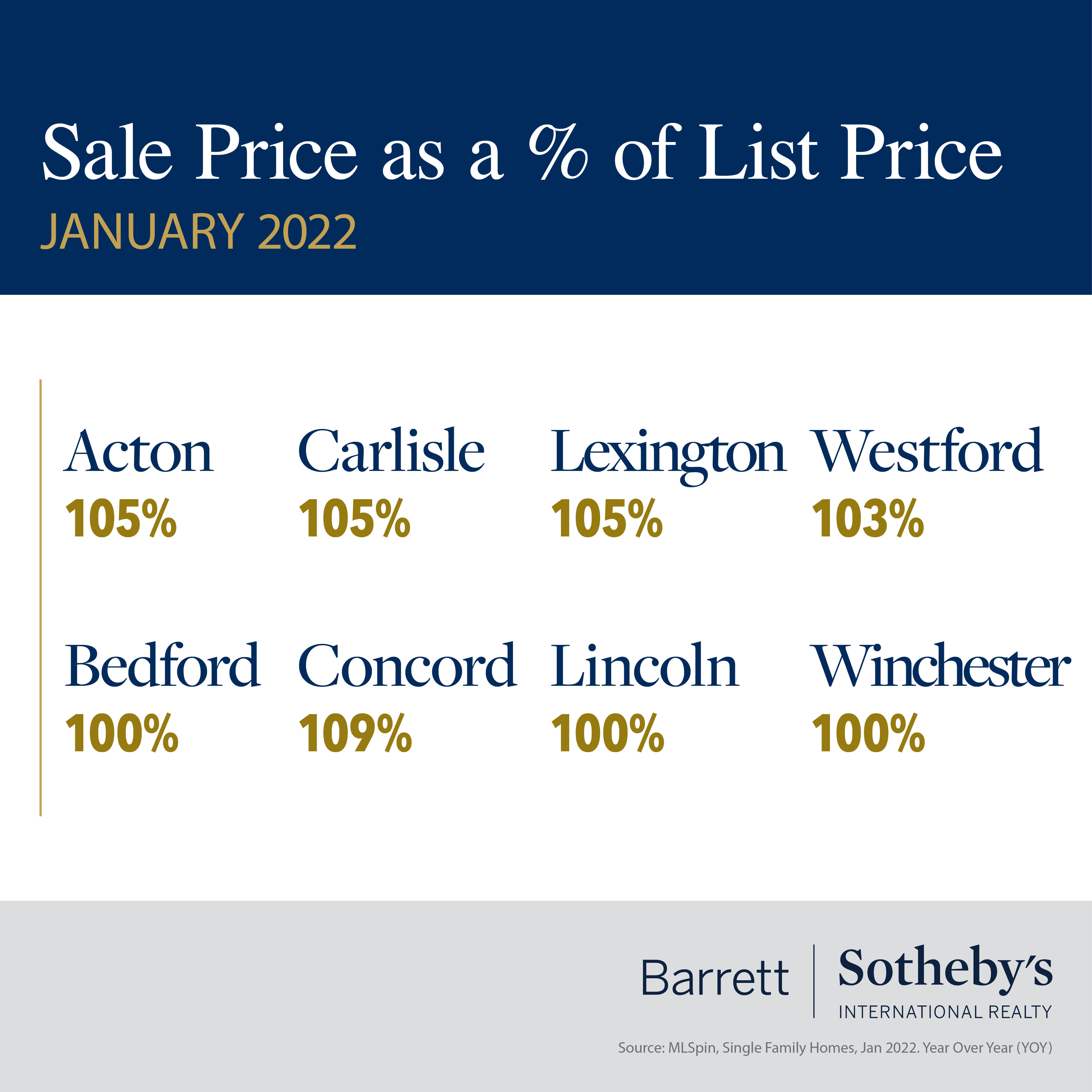 There is a very “Groundhog Day” feel to the real estate stats for our communities in January. As in previous months, we are looking at increased prices, decreasing days on market and limited inventory across all our towns. Westford and Winchester saw sale prices increase by 15% or more versus January 2021, and in Concord the average days on market fell to just 18. The median home sale price rose above $1.8m in Lexington, up almost 20% since last year. The number of homes sold in Acton dropped by more than 30% compared to the previous year, and in both Bedford and Lincoln there was just one single-family home for sale on February 1st. The shortage of available listings continues to drive competition for homes, which in turn pushes up the sale price – across all our towns the sale prices are equal to or above the list price. Gone are the days of making low-ball offers to start negotiations – smart buyers know they must do their homework to be competitive in this market. This is where a good agent is worth their weight in gold – their experience, knowledge and connections will help you make a successful offer to secure your dream home.