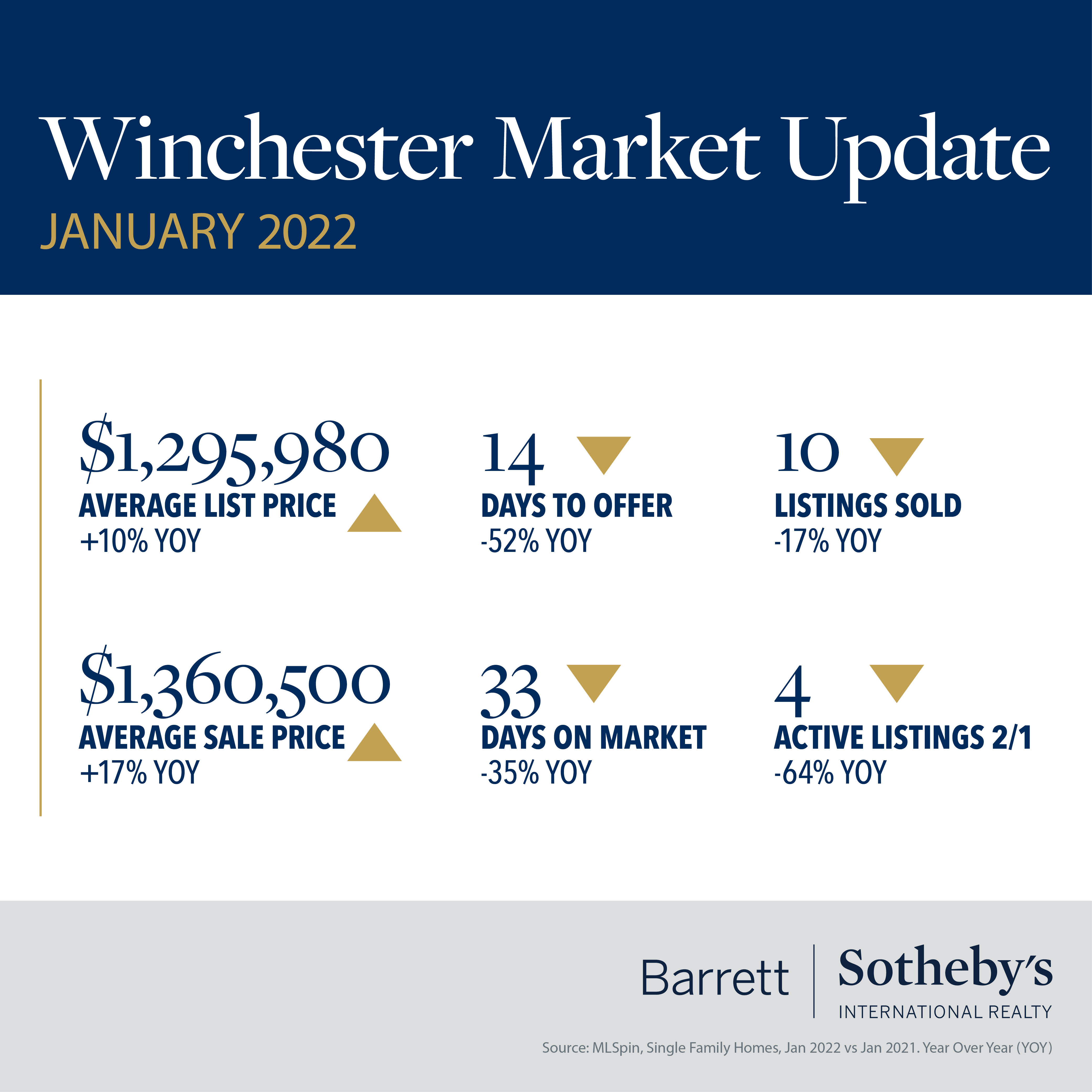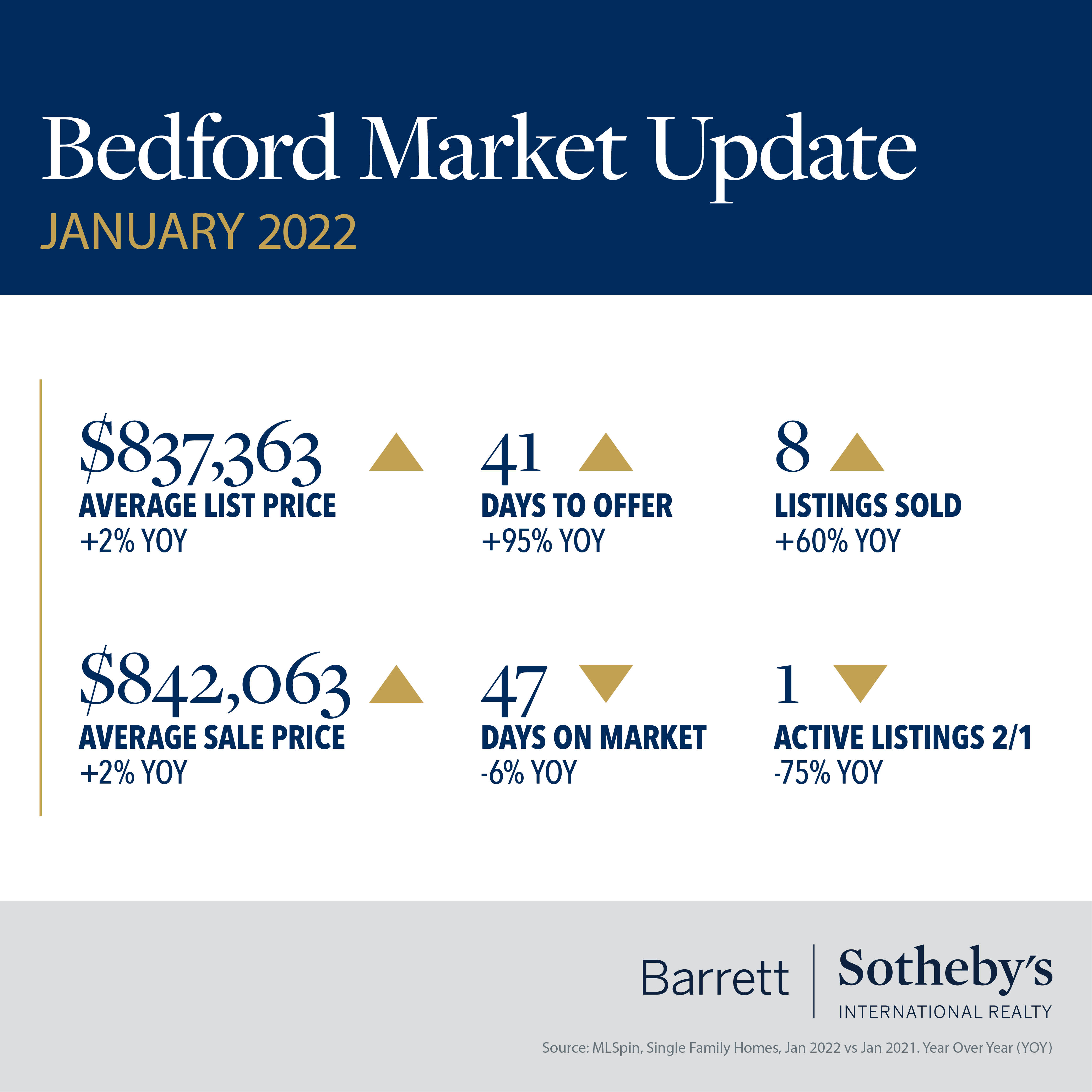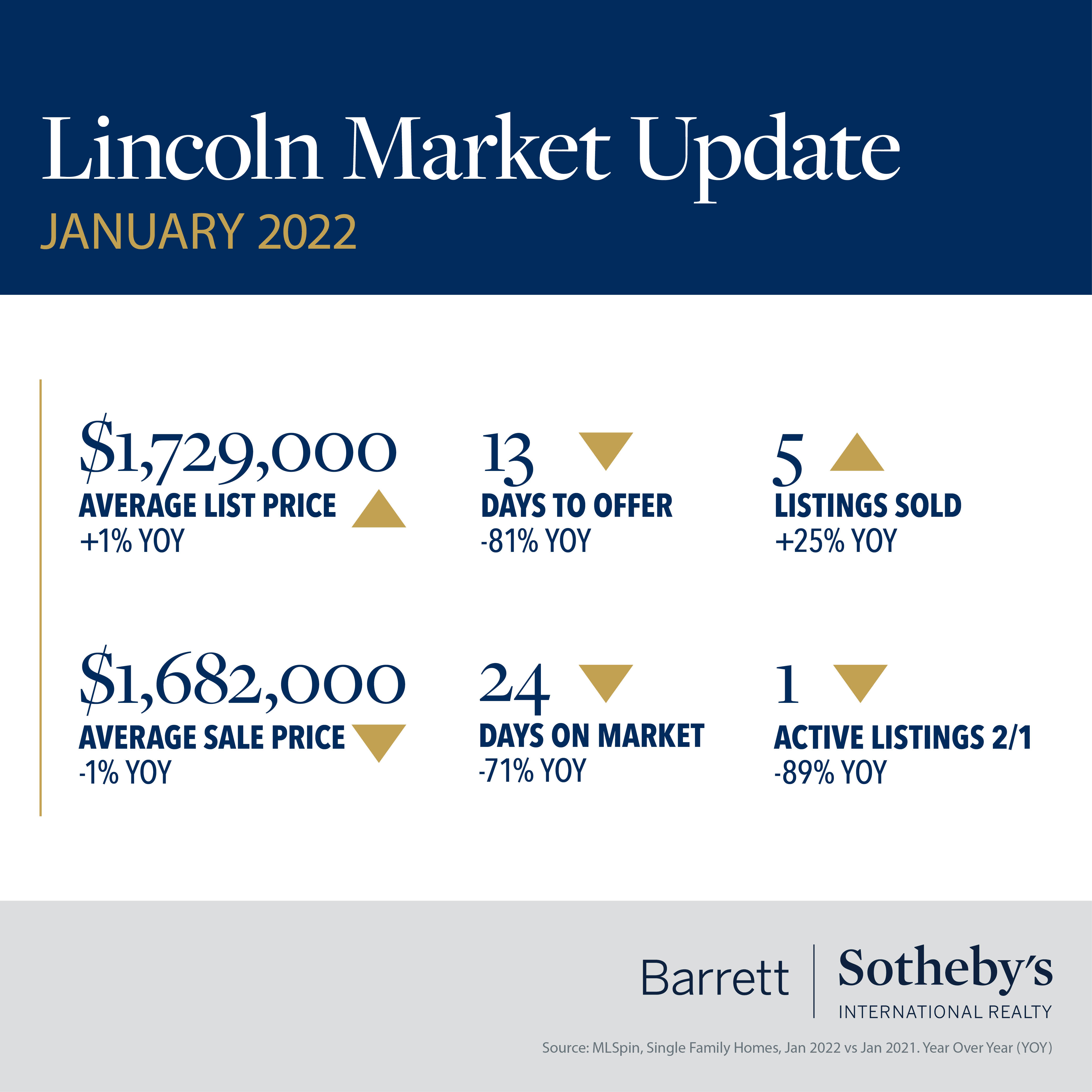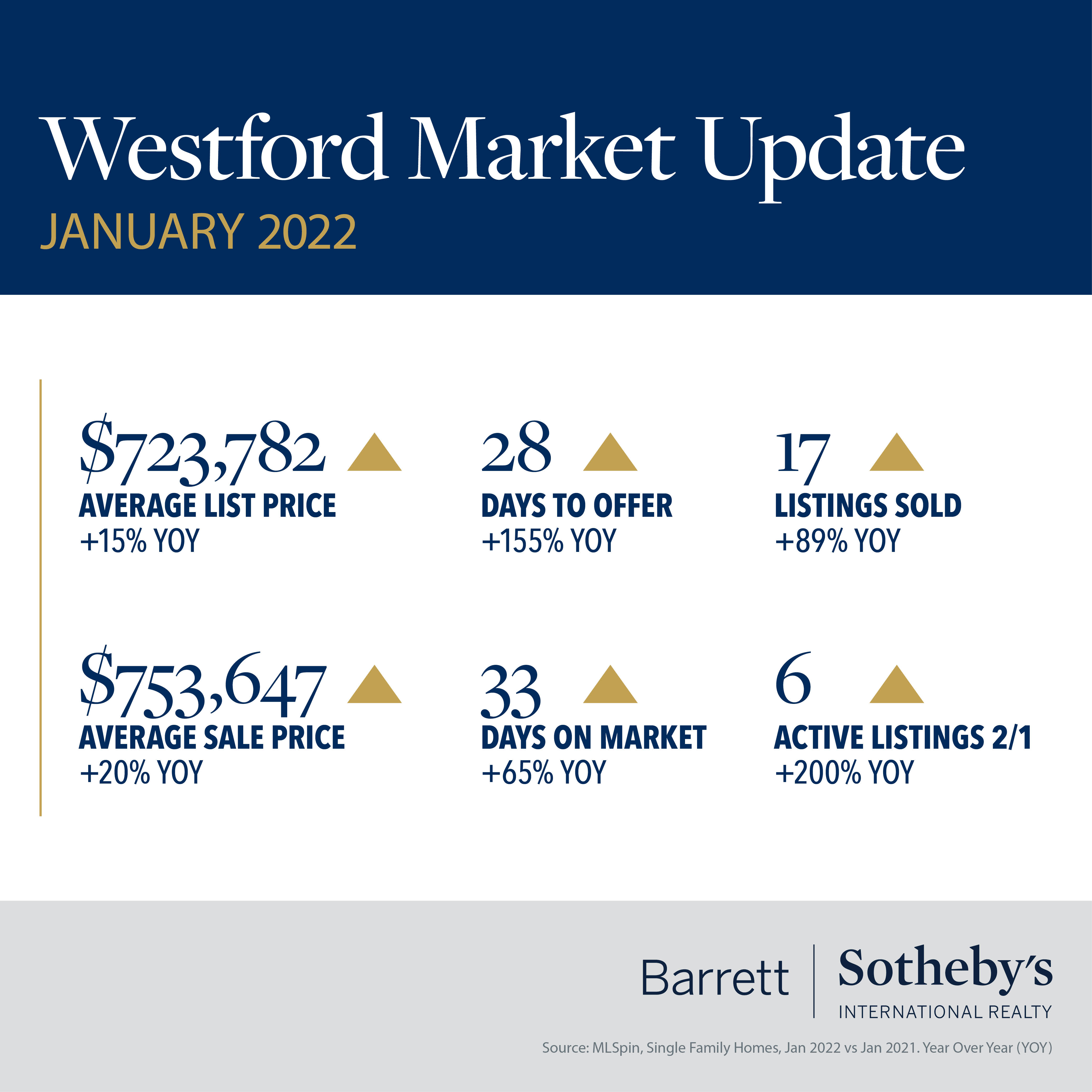 There is a very “Groundhog Day” feel to the real estate stats for our communities in January. As in previous months, we are looking at increased prices, decreasing days on market and limited inventory across all our towns. Westford and Winchester saw sale prices increase by 15% or more versus January 2021, and in Concord the average days on market fell to just 18. The median home sale price rose above $1.8m in Lexington, up almost 20% since last year. The number of homes sold in Acton dropped by more than 30% compared to the previous year, and in both Bedford and Lincoln there was just one single-family home for sale on February 1st. The shortage of available listings continues to drive competition for homes, which in turn pushes up the sale price – across all our towns the sale prices are equal to or above the list price. Gone are the days of making low-ball offers to start negotiations – smart buyers know they must do their homework to be competitive in this market. This is where a good agent is worth their weight in gold – their experience, knowledge and connections will help you make a successful offer to secure your dream home.