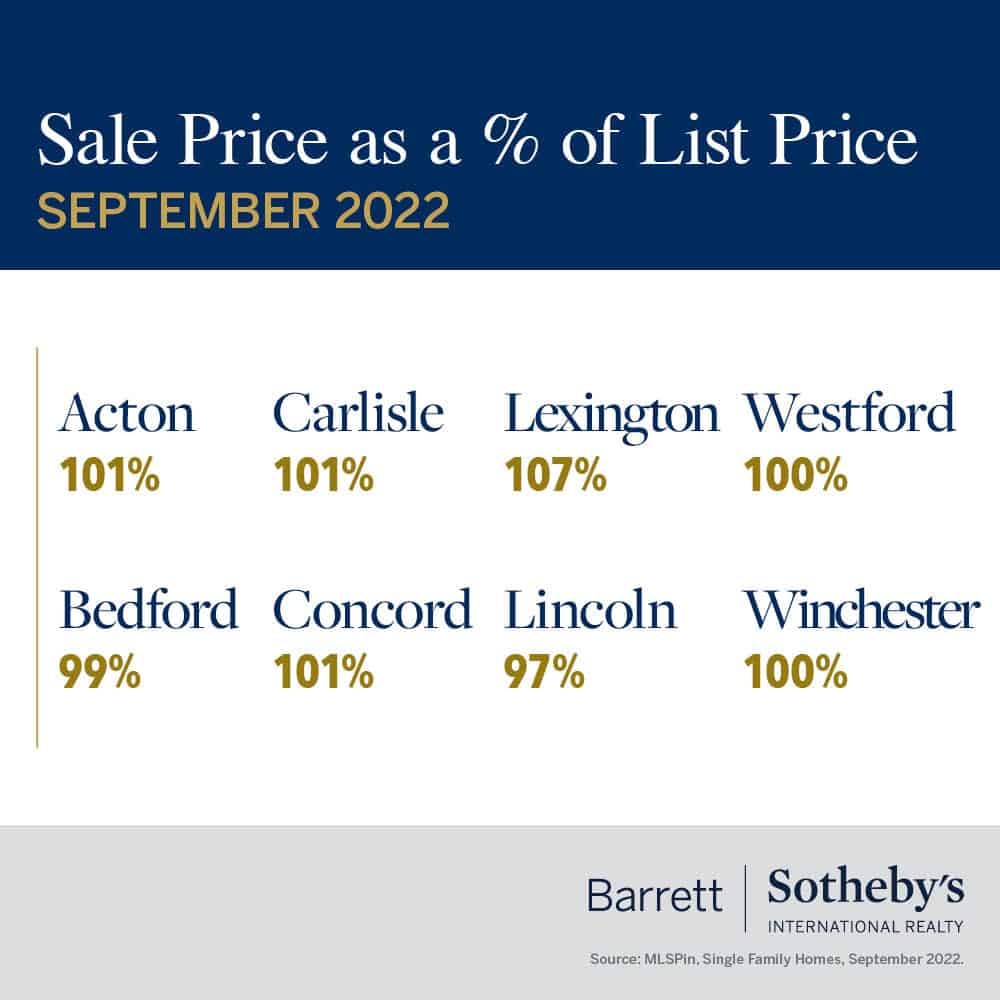 Seasons change and so does the housing market. We knew that the all-out seller’s market we’ve experienced over the past 12-18 months could not last, and over the summer we saw a shift towards the buyers begin. The signs have been there for a while – longer days on market, price growth slowing, sale price to list ratio decreasing – and September’s sale stats show this trend is continuing. What we are NOT experiencing is a crash or a collapse, and it is important to make that distinction. In several of our towns – including Acton and Westford, average sale price is up on last year’s high, showing that values are still increasing. Whilst most homes are taking a little longer to go under agreement, days on market are actually down year on year in Concord and Lexington, where demand for homes remains high. And in most areas the average sale price is the same or greater than the list price - another good indicator of demand. If you are thinking of selling then you should act fast to take advantage of the boom in buyers during the fall season – more buyers can only be a good thing for those keen to sell. Read our recent blog to find out how you can sell with confidence this fall season.