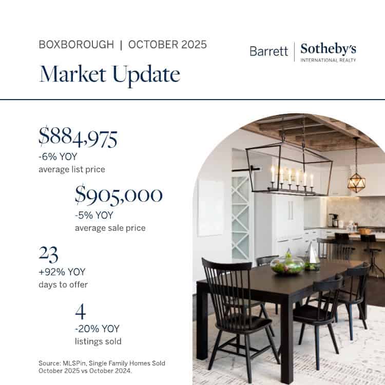 Whether you’re thinking about selling, exploring opportunities as a buyer, or simply curious about your town’s current market dynamics, our experienced team is here to help. Connect with your local Barrett Sotheby’s International Realty agent for expert insight, personalized guidance, and a strategy tailored to your goals.