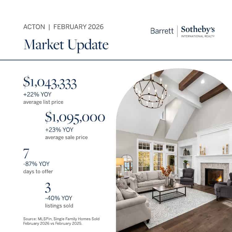 Speed remains one of the defining characteristics of this market. Homes in Acton and Bedford moved dramatically faster than a year ago, with days on market cut nearly in half. Even in towns where overall volume declined, buyers acted decisively when inventory aligned with their needs. The overarching takeaway is that February was less about broad appreciation or decline and more about hyper-local dynamics, pricing precision, and supply constraints.
