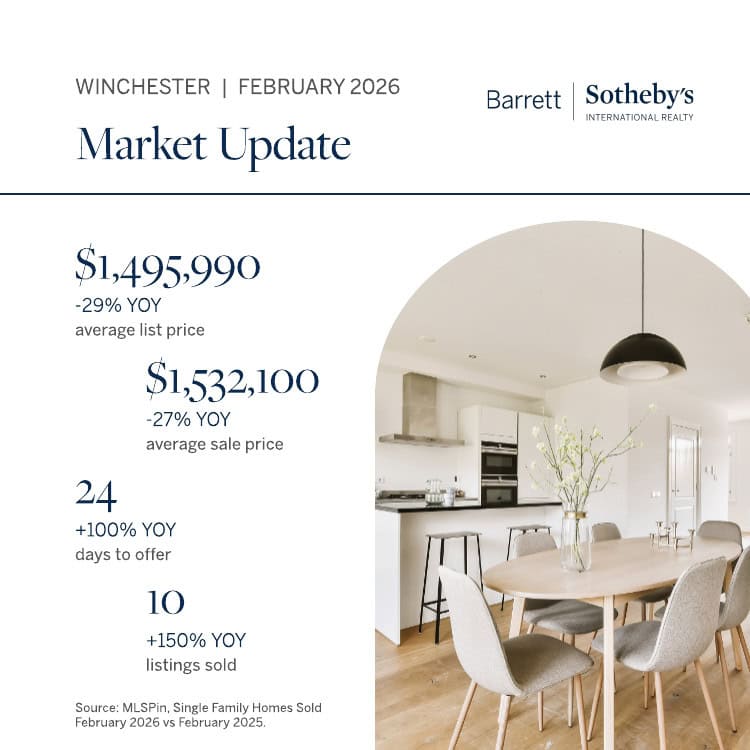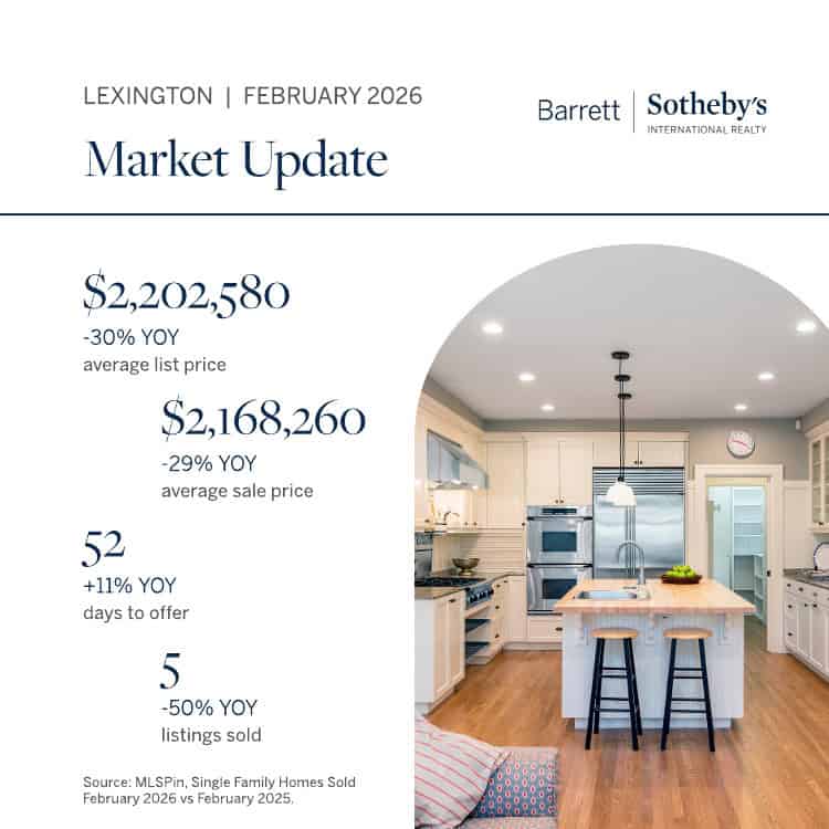 While single-family homes set the tone, the condo market showed more varied performance. Some communities, such as Bedford, saw notable increases in condo pricing and volume, while others, including Lexington, experienced year-over-year slowdowns. As always, condo trends are highly inventory-driven and can shift quickly. If you’d like a deeper dive into condo data — or insight into towns not included here — our team is happy to provide a customized breakdown. Reach out to us to discuss how these February trends may impact your moving plans this spring.